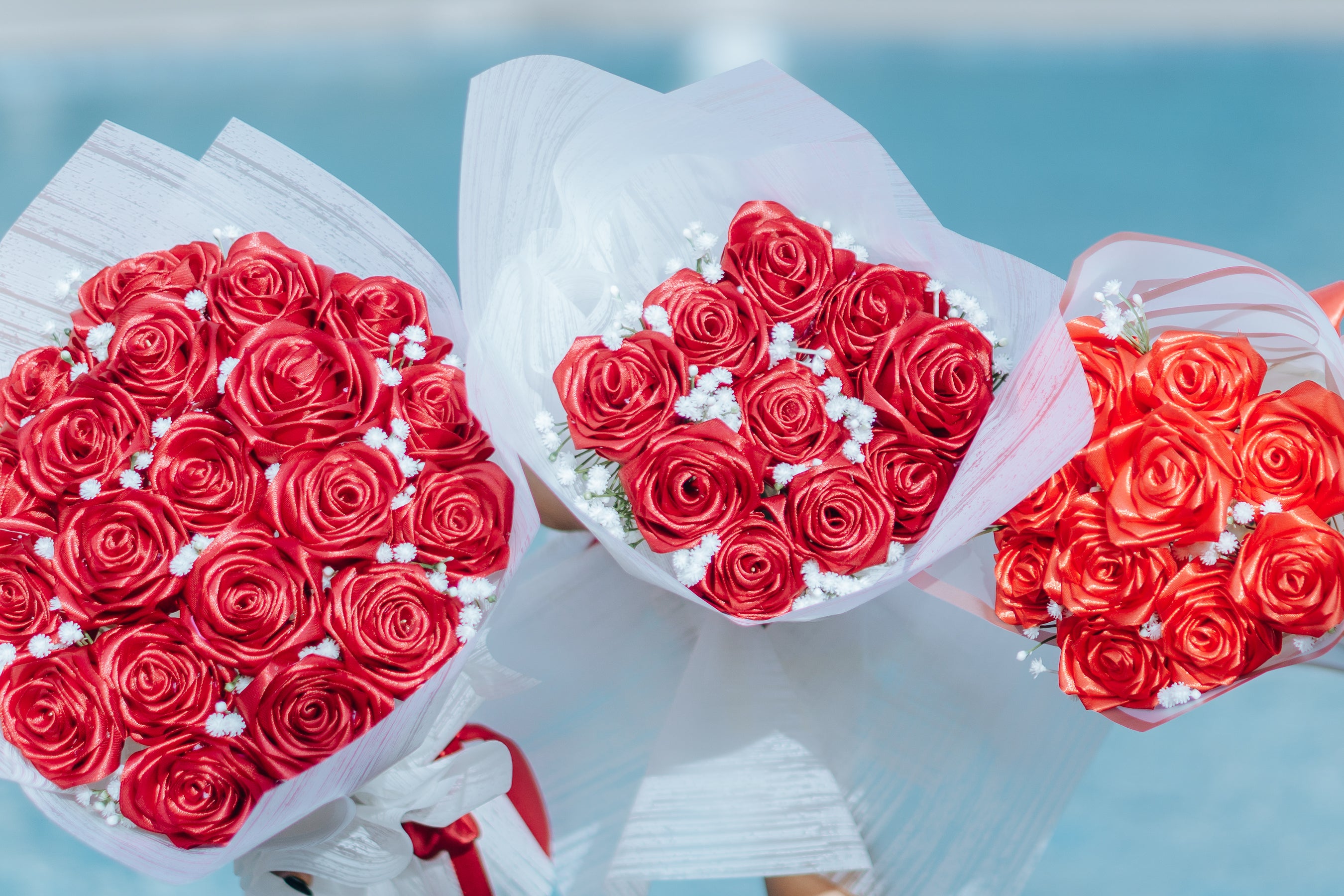 Handmade ribbon flowers created with love, meant to be part of your forever.